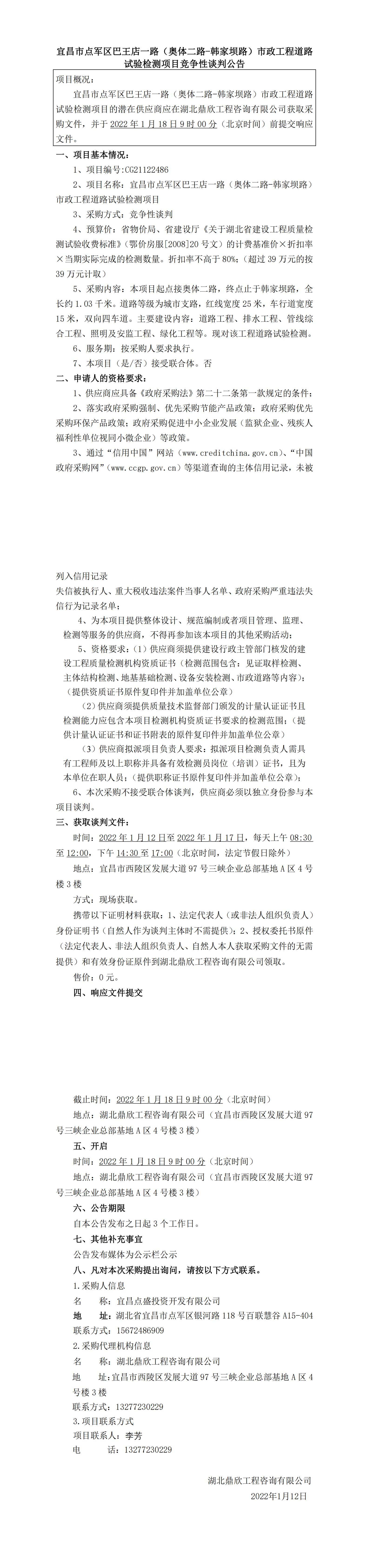 宜昌市點軍區(qū)巴王店一路(奧體二路-韓家壩路)市政工程道路試驗檢測項目競爭性談判公告