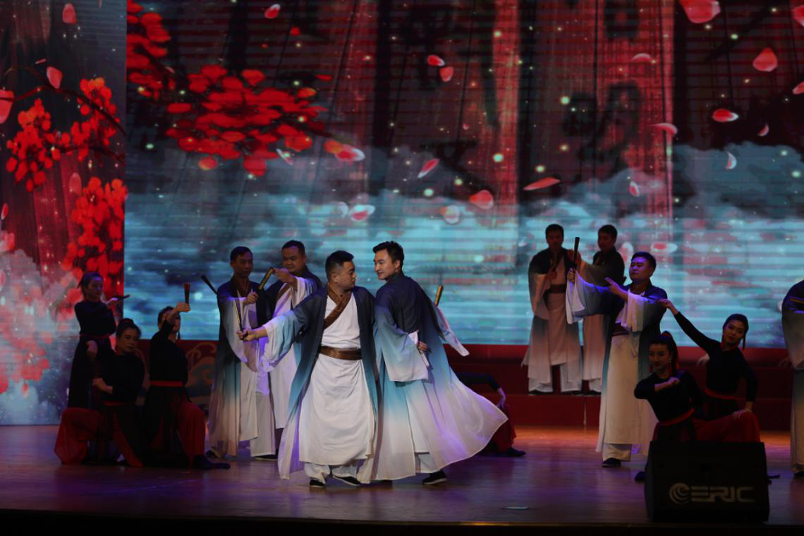 隨著音樂響起,“楚國(guó)男子”白衣飄飄,手持紙扇,“江南女子”搖曳身姿,執(zhí)扇起舞。公司參加表演的職工在舞臺(tái)上大放異彩,為現(xiàn)場(chǎng)和觀看直播的觀眾奉上一場(chǎng)美輪美奐的文化盛宴,既再現(xiàn)了楚國(guó)藝術(shù)的奇異想象和浪漫色彩,也展現(xiàn)了江南點(diǎn)軍的神秘風(fēng)情和深遠(yuǎn)文化。