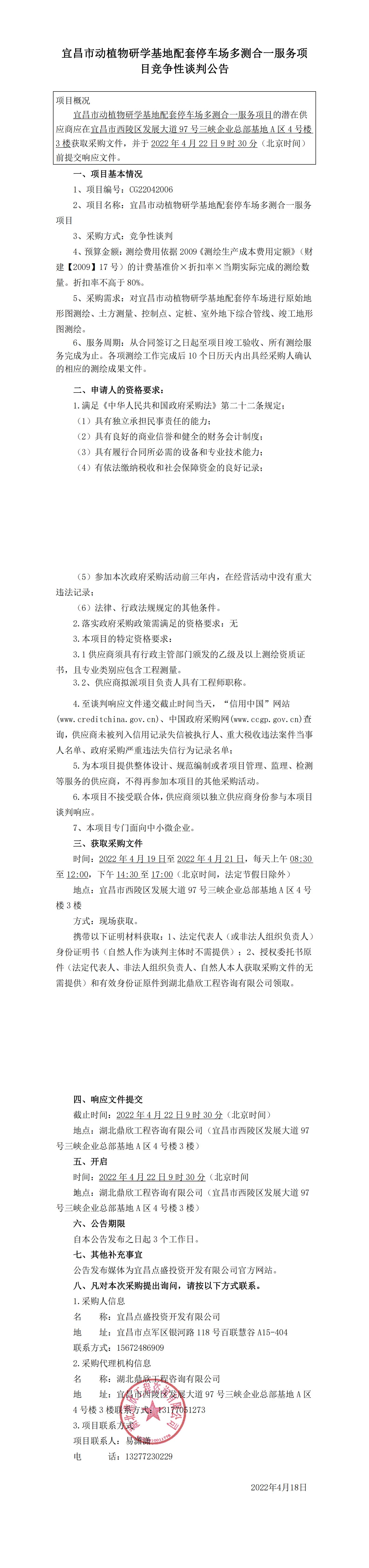宜昌市動(dòng)植物研學(xué)基地配套停車場多測合一服務(wù)項(xiàng)目競爭性談判公告