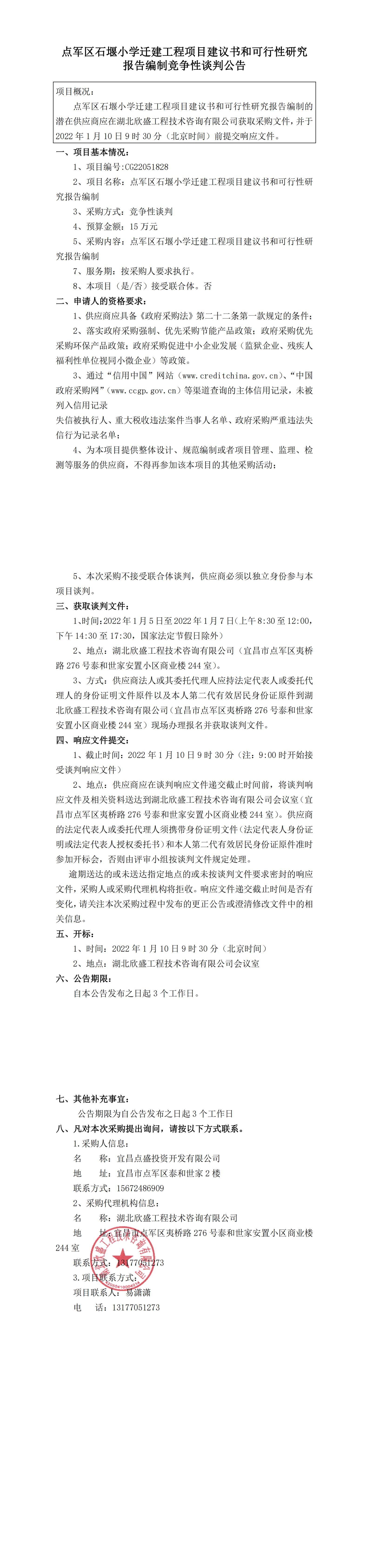 點(diǎn)軍區(qū)石堰小學(xué)遷建工程項(xiàng)目建議書和可行性研究報(bào)告編制競爭性談判公告