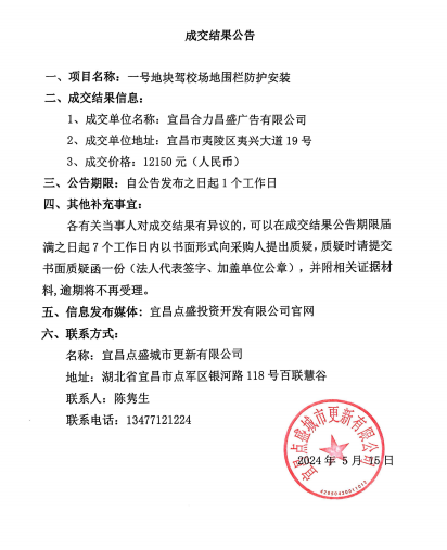 城市更新一號地塊駕校場地圍欄防護(hù)安裝成交公告