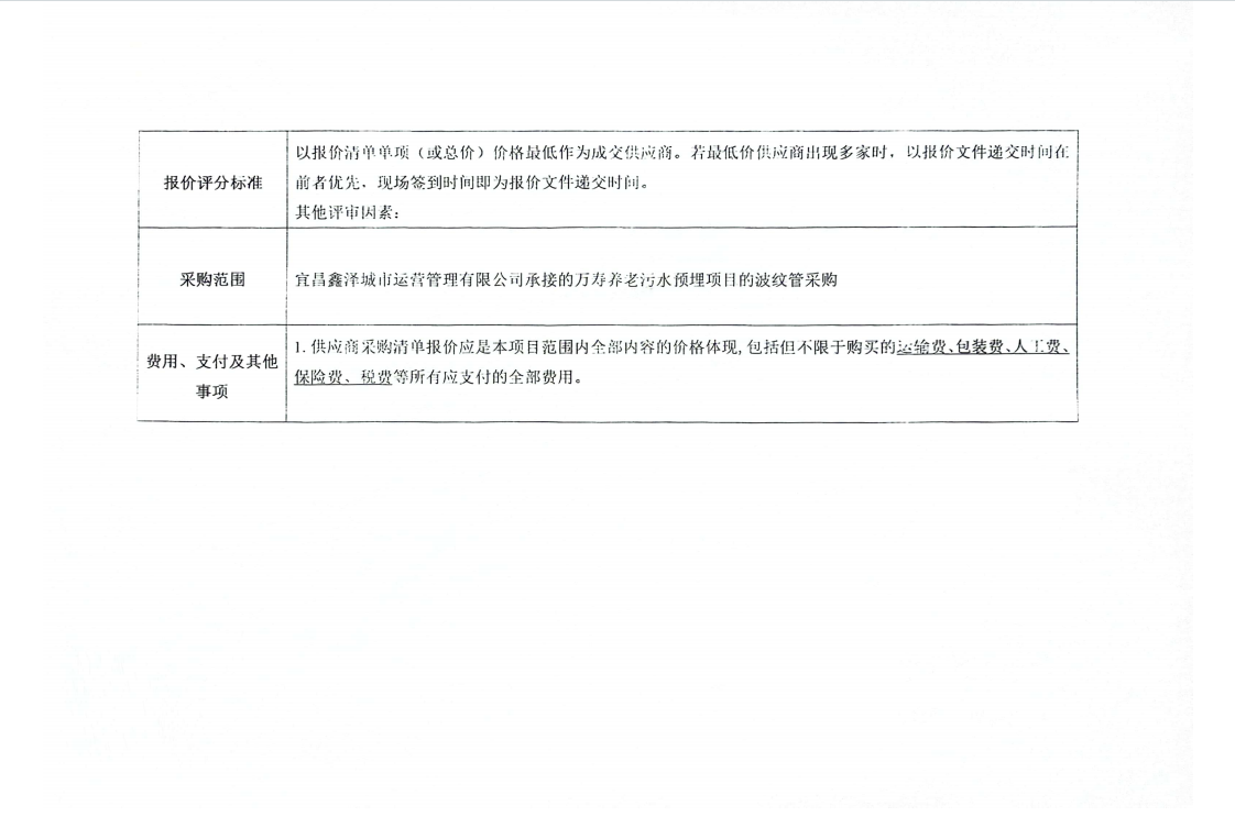 萬壽養(yǎng)老污水預(yù)埋波紋管采購詢價公告