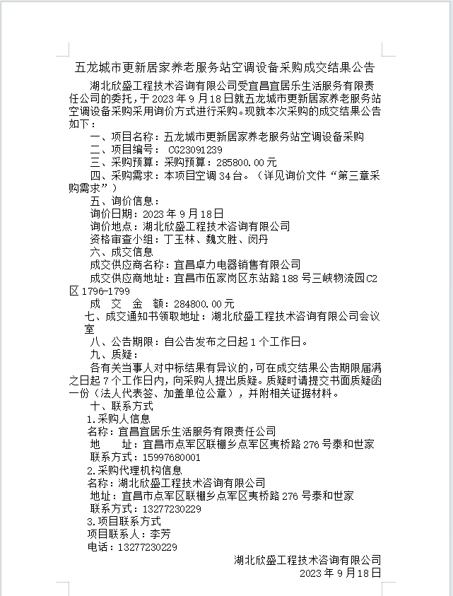 五龍城市更新居家養(yǎng)老服務(wù)站空調(diào)設(shè)備采購成交結(jié)果公告