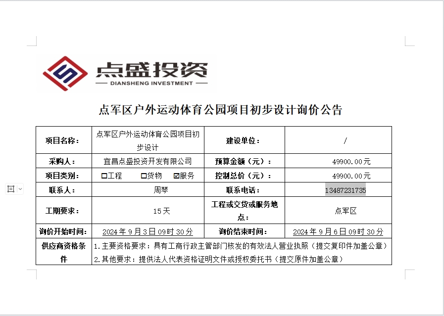 點(diǎn)軍區(qū)戶外運(yùn)動(dòng)體育公園項(xiàng)目初步設(shè)計(jì)詢價(jià)公告